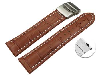 Quick change Watch strap with deployment clasp smooth calfskin light brown with white stitching - 18mm 20mm 22mm 24mm and 26mm. Both sides are made of calfskin leather. The watch strap is supplied with quick-change bars.