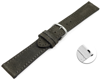 Quick release Watch strap dark gray made from a rough suede leather in 18mm and 20mm. It has no padding and is very soft and comfortable to wear. The inside is made of nubuck leather.