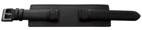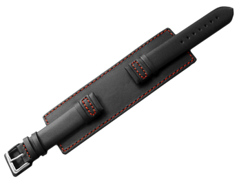 Watch band - Genuine leather - with full Pad - black - red stitch