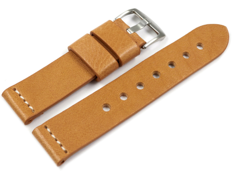 Watch strap - Genuine grained leather - light brown 20mm Steel