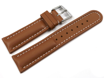 Watch strap - Genuine leather - smooth - light brown 18mm Steel