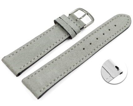 XS Watch strap Taupe made from a rough suede leather in 18mm and 20mm. It has no padding and is very soft and comfortable to wear. The inside is made of nubuck leather.